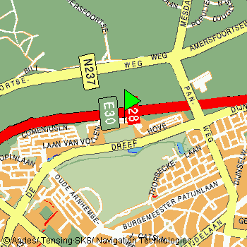 In de bebouwde kom (Zeist) bij de 2e verkeerslichten (kruising met de Dreef) gaat u linksaf